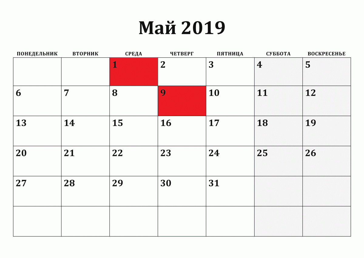 - 05.01 – выходной;