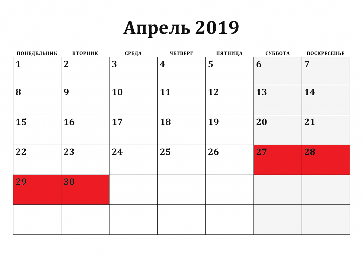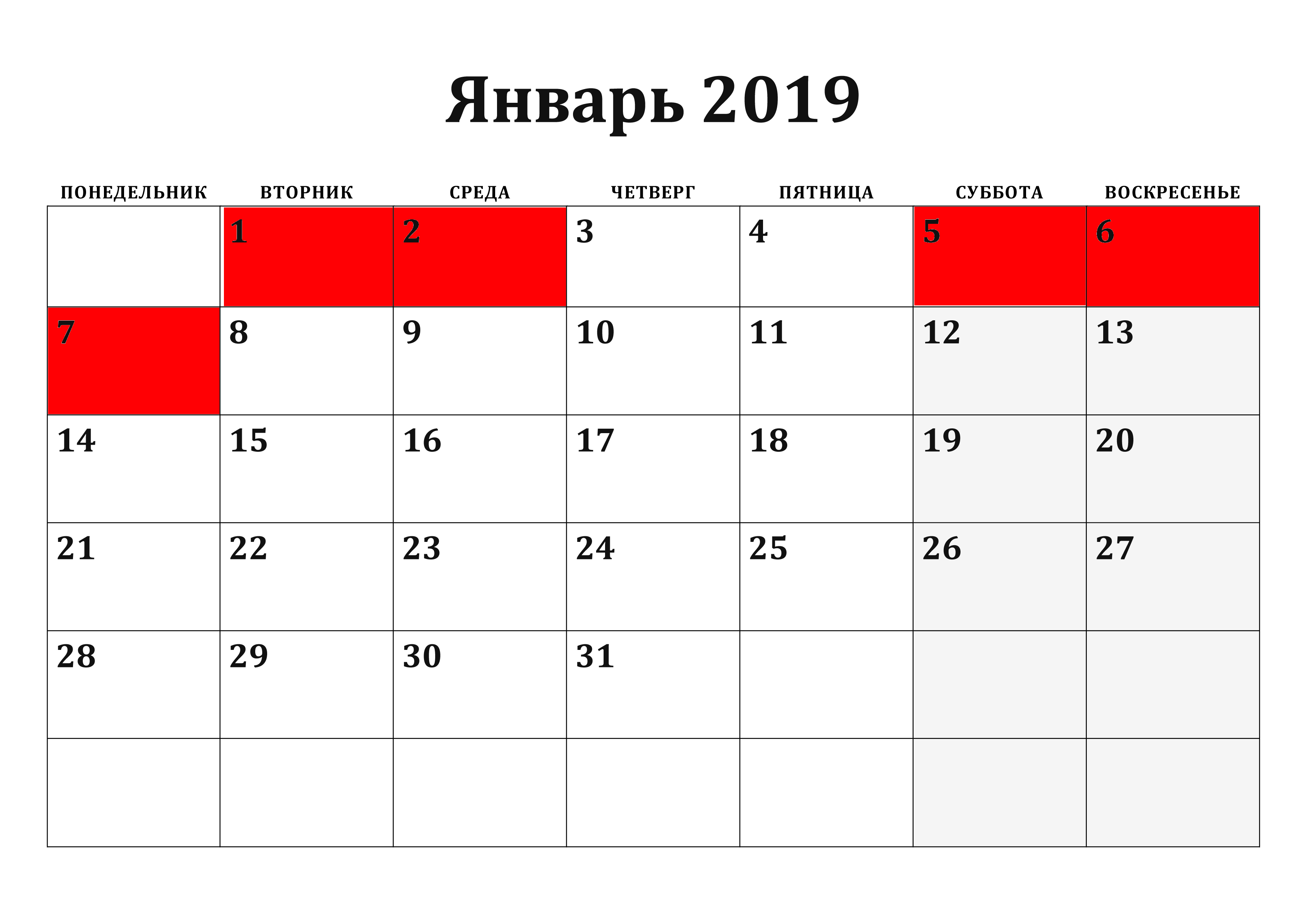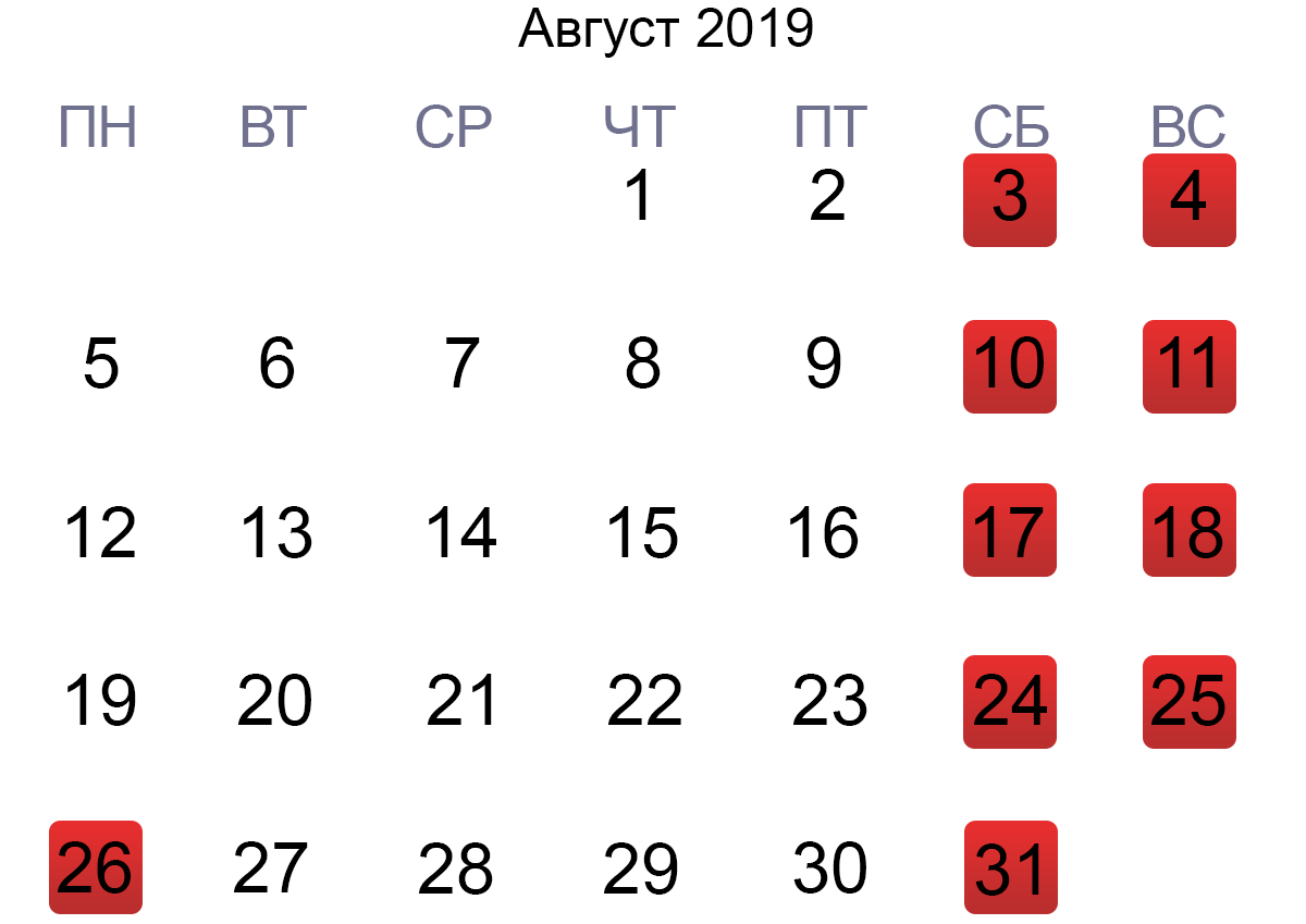 - 01.01 – выходной;