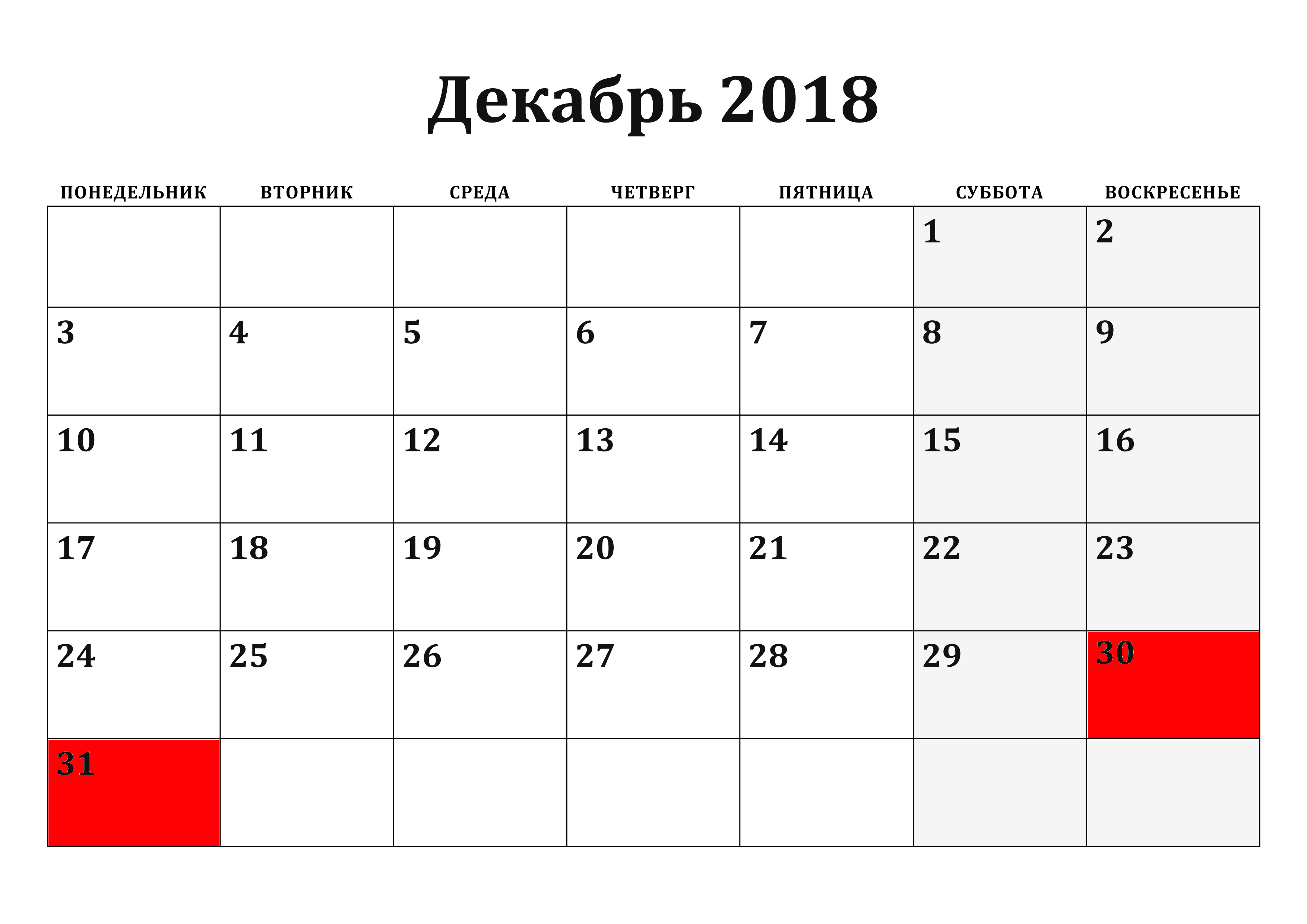 - 30.12 – выходной;